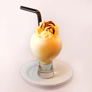 انبه،موز،بستنی وانیلی،خامه،سس شکلات