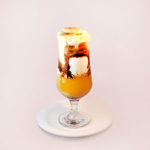 پرتقال،موز،بستنی وانیلی،خامه،سس شکلات